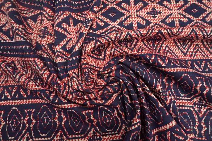 A Lovely Cotton Jersey Aztec Print in Red, Marine Blue and White.