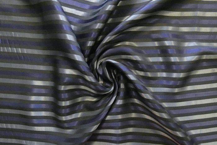 A Luxury Italian Viscose Jacquard Stripe Lining In Charcoal, Navy & Grey