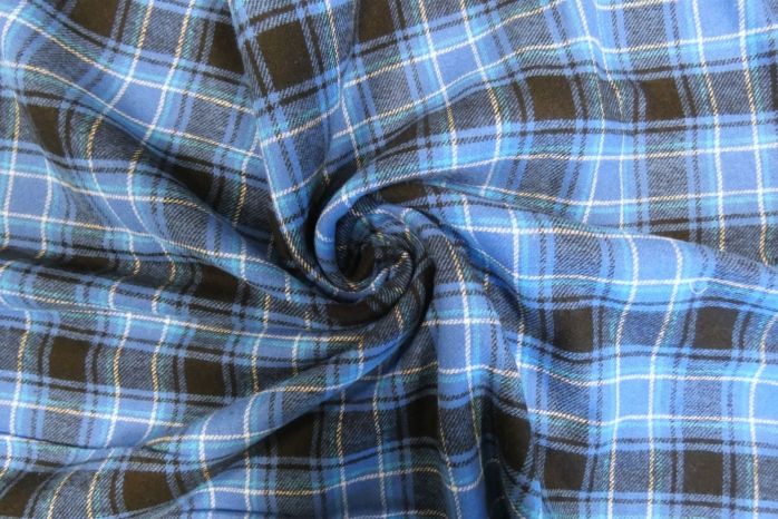 A Lovely Cotton Brushed Flannel Tartan Check In Black & Bright Blue Tones.