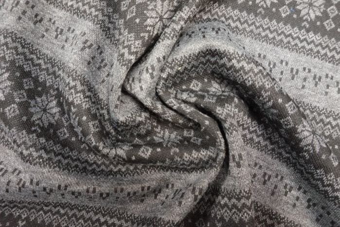 Fairisle Printed Ponte Roma Jersey in Charcoal and Black Tones