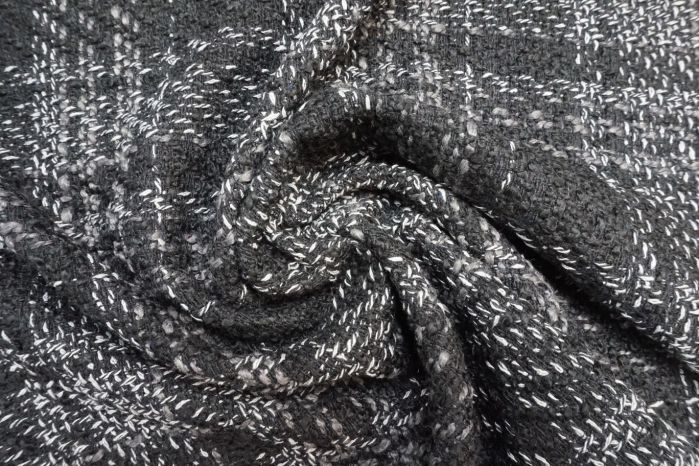 A Beautifully Heavy Woven Tweed Boucle Check in Black and Grey Tones