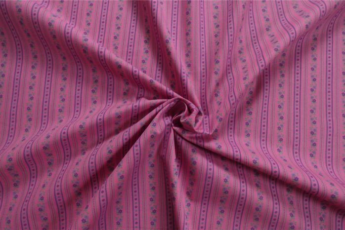 A Beautiful Cotton Pesanté Poplin Digital Vintage Stripe Print in Cerise Pink, Green, Lilac and Purple
