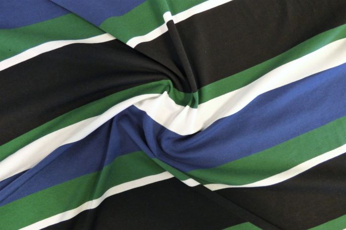 A Lovely Yarn-Dyed Knitted Variable Stripe jersey In Forest Green, White, Black And Indigo Blue