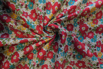 A Beautiful Lightweight "Cool to wear" Pure Cotton Lawn Digital Floral Print In Tones Of Claret, Cornflower Blue, Sunshine Yellow & ivory