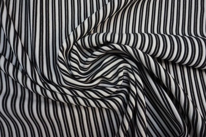 A Textured Heavy Ribbed Stripe Ponte Roma Jersey in Black & White