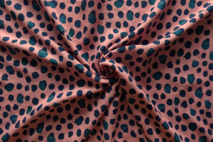 A Lovely Viscose Challis Lawn Digital Abstract Spot Print in Tones of Candy PInk, Oxford Navy, Teal & Bottle Green
