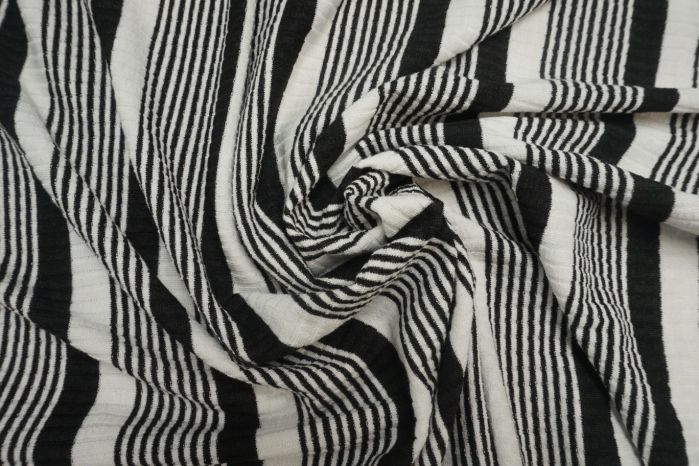 A Lovely Chunky Rib Varied Width Stripe Jersey in Black and White
