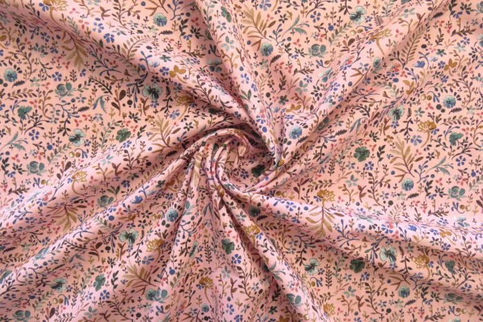 A Beautifully Soft 100% Superfine Cotton Louise Lawn Digital Floral Print in Tones of Light Pink, Marine Green, Beige and Blue