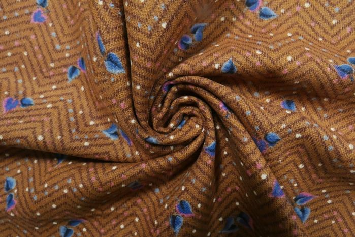 A 100% Brushed Viscose Vintage Inspired Digital Leaf Print In Brown, Moonlight Blue, White & Pink