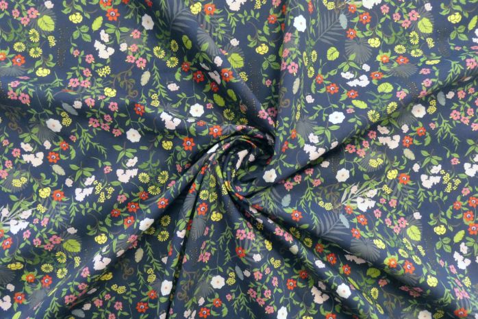 A Beautifully Soft 100% Superfine Cotton Louise Lawn Digital Floral Print in Tones of Oxford Navy, Fresh Green, Yellow, Classic Pink, Red and White