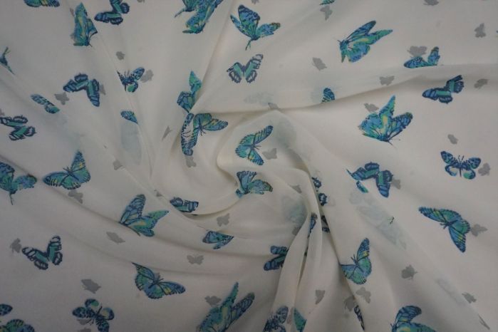 A Soft Chiffon Digital Butterfly Print in Turquoise Tones