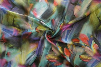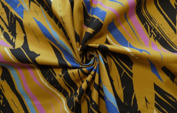 A 100% Cotton Lawn Abstract Print In Black, Ochre, Pink & Blue
