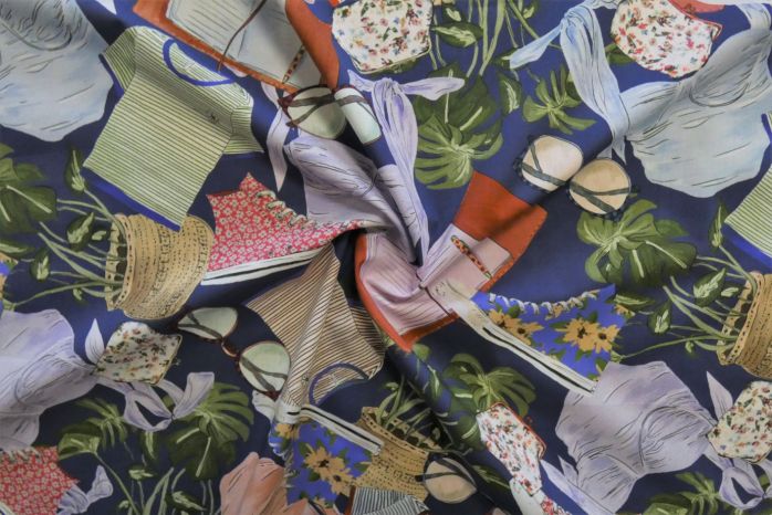 A Beautiful Cotton Marlie-Care Lawn Digital Print In Tones Of French Navy, Lilac, Forest Green, Terracotta Red, Ivory, Pale Blue And Blush Pink