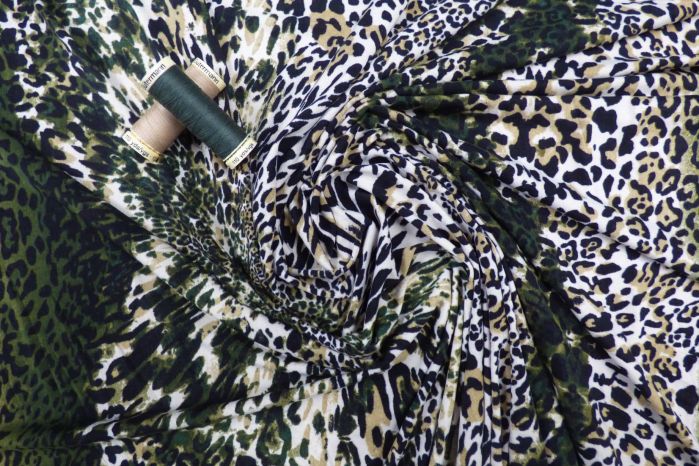 A Stunning Stretch Peached Jersey Animal Print In Tones Of Black/Green/Camel/Natural