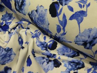 A Stunning Viscose Crepe Jersey Large Floral Print In Tones Of Black, Crimson, Brown Beige and Cream.