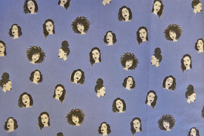 A Colourful Digital Print In Black and Ivory Tones On a Cornflower Blue Background