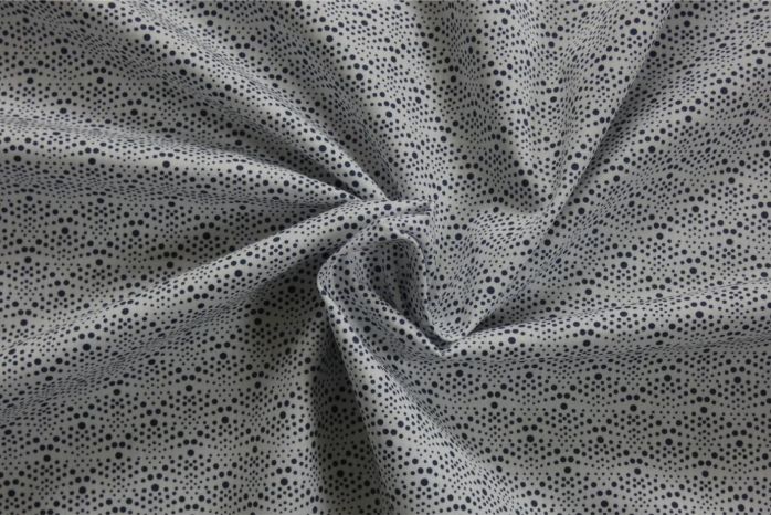 A Beautiful Cotton Pesanté Poplin Digital Print Featuring a Navy and White Spotty Scallop Design