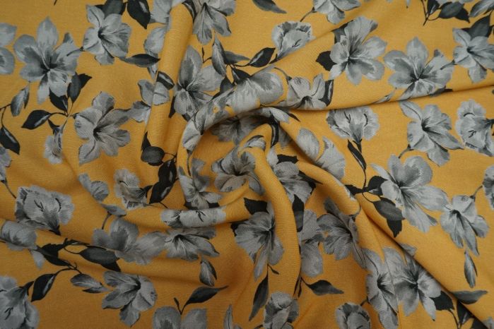 A Stunning Viscose Digital Floral Print in Ochre and Grey Tones