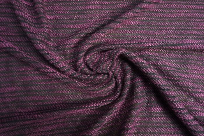 An Embroidere Tramline Strippe Jersey Knit in Damson on Black
