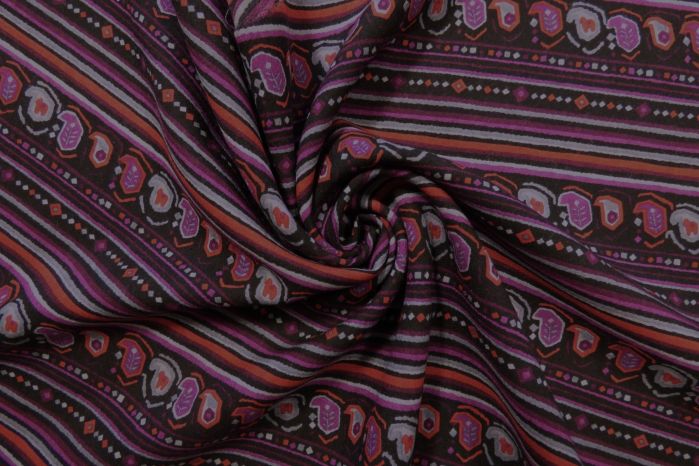 A Lovely 100% Pure Wool Crepe Lawn Retro Diagonal Print in Magenta, WIne, Silver Grey & Scarlet on Black
