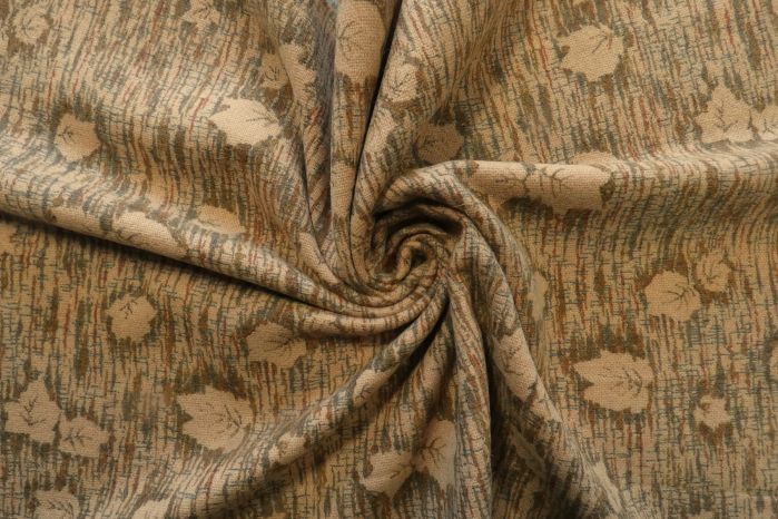 A Lovely 100% Wool Soft Digital Leaf Printed Design In Natural, Grey & Brown Tones