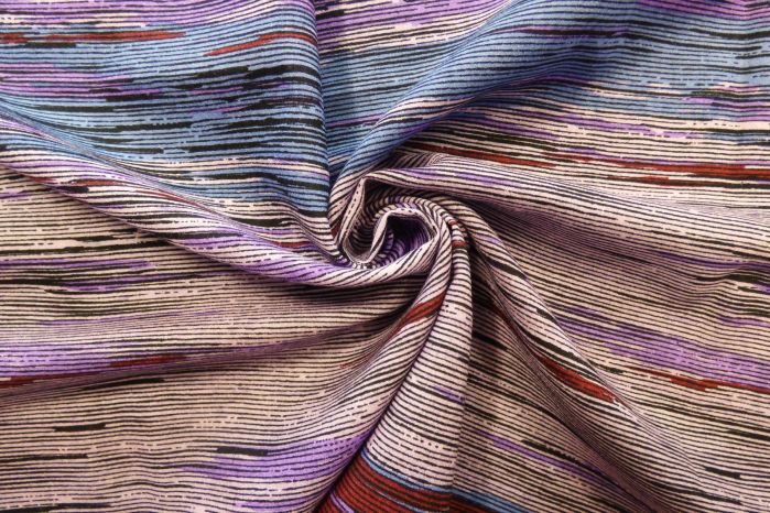 A Lovely 100% Wool Digital Printed Challis Crepe Vintage Glitch Design in Colourful Tones