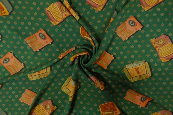 A Beautiful Retro Radio Print In Tones Of Bottle Green, Burnt Orange, And Brown