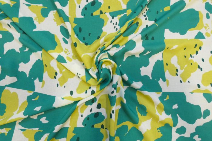 A Lovely Viscose Challis Lawn Digital Abstract Print In Tones Of Green
