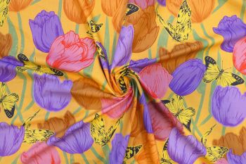 A Lovely 100% Cotton Superfine 'PURE' Lawn Floral Digital Face Print In Tones of Lime, Rose Pink, Black, And Buttercup Yellow