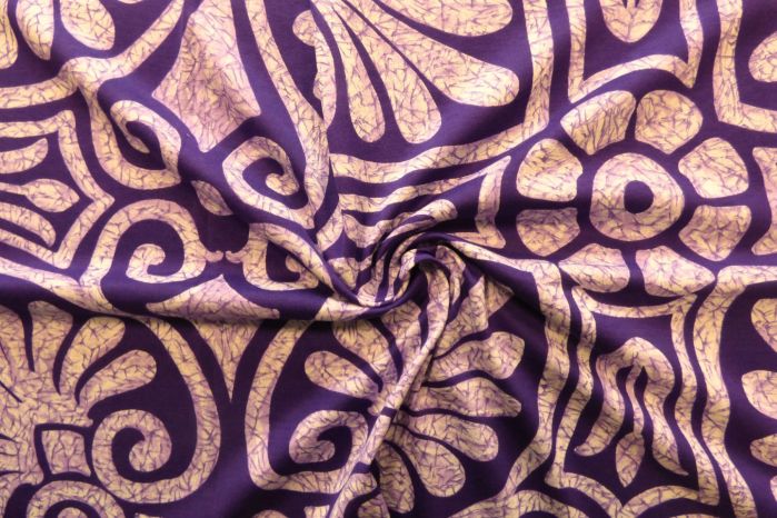 A Stunning Large Scale Digital Printed Jersey Featuring Baroque Style Swirls in Violet Tones