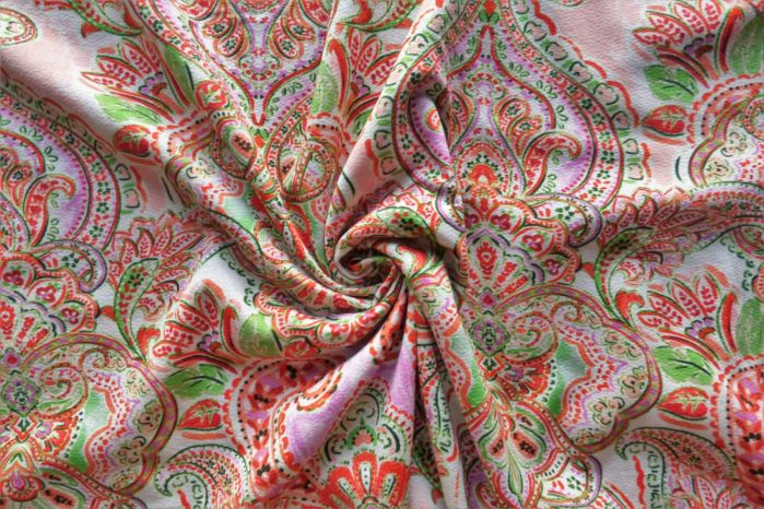A Stunning Paisley Print in Watermelon, Magenta and Apple Green.