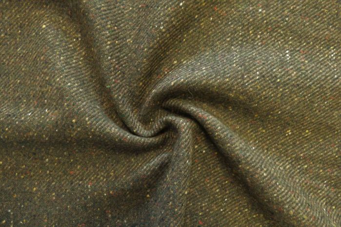 A Lovely Wool Mix Slub Tweed - Coating In Khaki Tones With Coloured Flecks