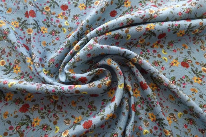 A Stunning Florenza Crepe with a Floral Digital Print on Dusky Blue