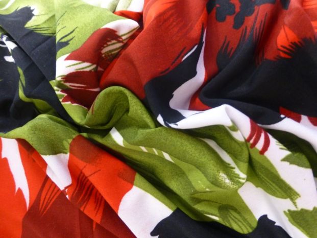 A Really Attractive Large Floral Printed Jersey In Stawberry & Lime
