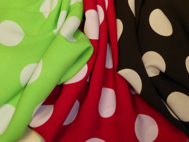 Three Lovely Large Polka Spot Peachskins In Lime, Fuschia & Cocoa