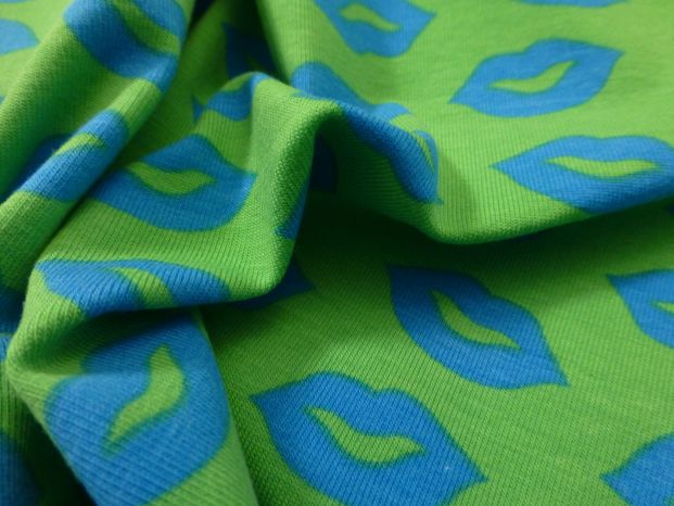 A Funky Lip Print Jersey In Apple Green & Sea Blue