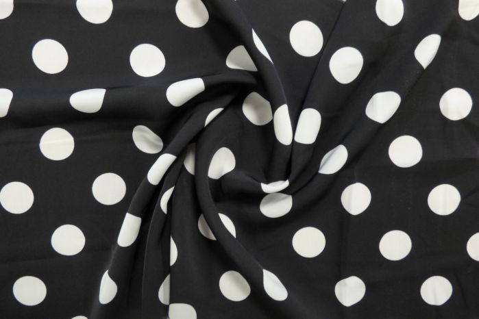 A Beautiful Polyester Lena Crepe Digital Polka Print In Black And White