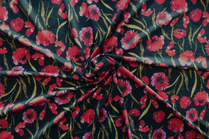 A Lovely Digital Floral Printed Juliet Jersey With Poppies on a Black Background