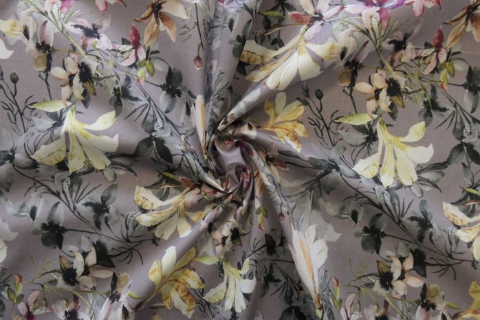 A Lovely Pure Cotton Soft Handle Lawn Digital Delicate Floral Print On A Smoke Grey Background