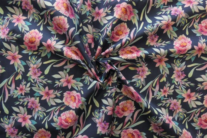 A Lovely Pure Cotton Soft Handle Lawn Digital Floral Print On A French Navy Background