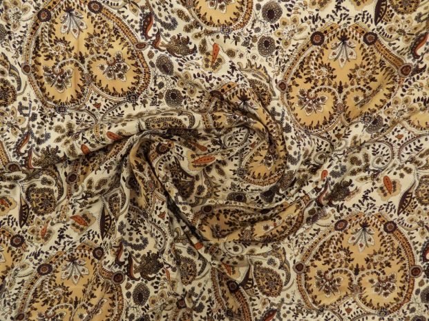 An Ex-Designer Crepe De Chine Digital Vintage Print In Neutral Tones