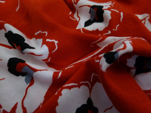A Soft Light Weight Rose Floral Jersey In Cranberry Red & White