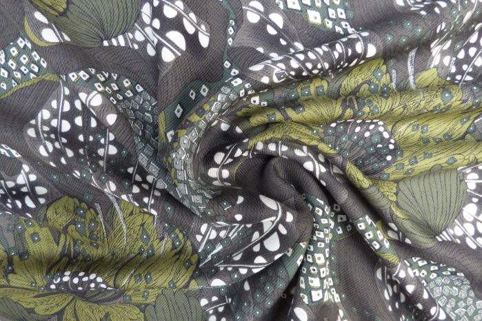 A Lovely 100% Wool 'London Designer' Challis Printed Dress Fabrics in Grey & Green Tones