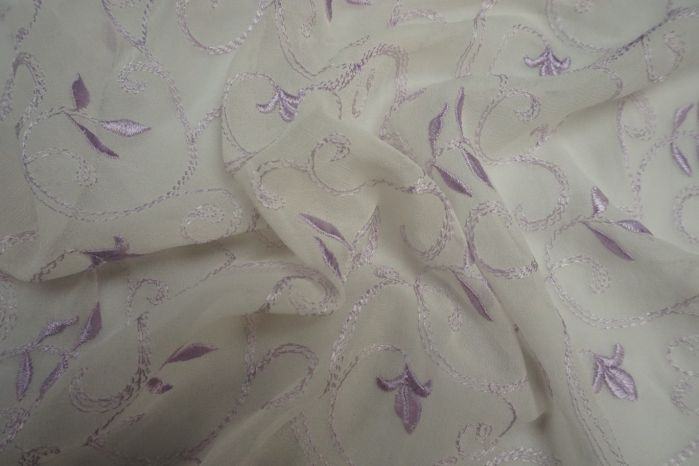 An Elegant and Feminine Soft Chiffon Embroidery in Ivory and Lilac Tones