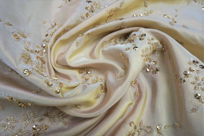 A Beaded Luxurious Taffeta With Scalloped Edge in Champagne Gold