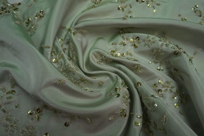 A Beaded Luxurious Taffeta With Scalloped Edge in Soft Sage
