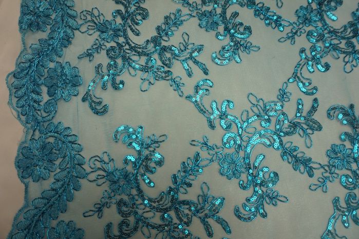 A Stunning Kingfisher Embroidered Corded Net Lace Effect