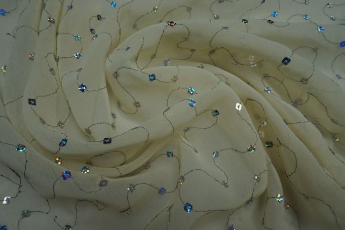 A Delicate & Beautiful Sequin Embroidered Chiffon Voile in Almond