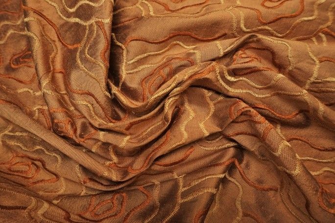 An Embroidered Flowerhead Style Swirl Design In Copper, Gold & Tan