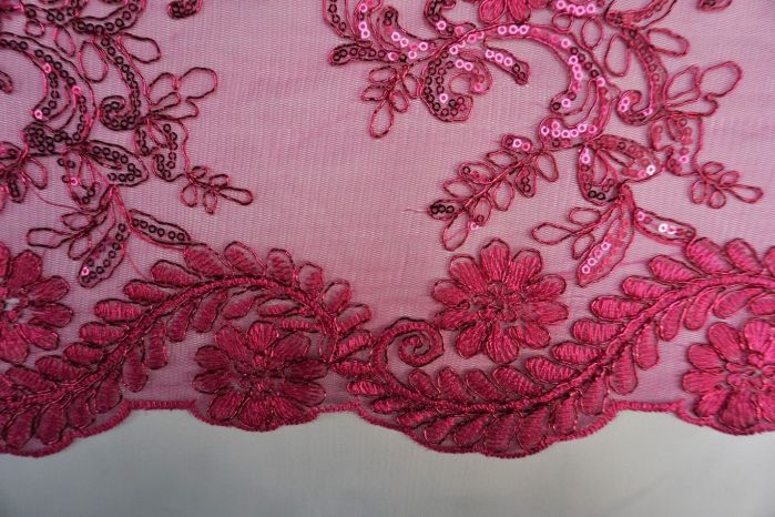 A Stunning Fuscia Pink Embroidered Corded Net Lace Effect